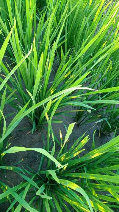 हमारे धान के पौधे के ऊपरी सिरे पर पीले और लाल रंग से पत्तियां झुलस रही है