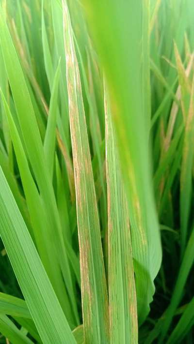 धान की पत्ती में लाल रंग का धारी बन रहा है। पति के ऊपरी हिस्से में लाल हो रहा है । ये किस तरह का रोग है या किसी पोषक तत्व की कमी है।