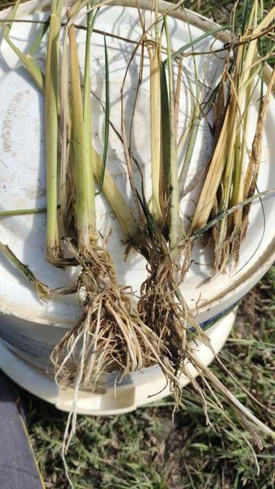 पौधे ऊपर से सूख रहे हैं। उखाड़ने में टूट जाते हैं ।जड़ के ऊपर तने से सडे़ हुए हैं।