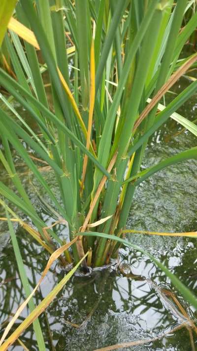 धान के सीस के निचे किट काट रहा हे । धान निकलने से पहले सुख जा रहा हे। धान के अन्दर चावल नही हौ रहा हे।
