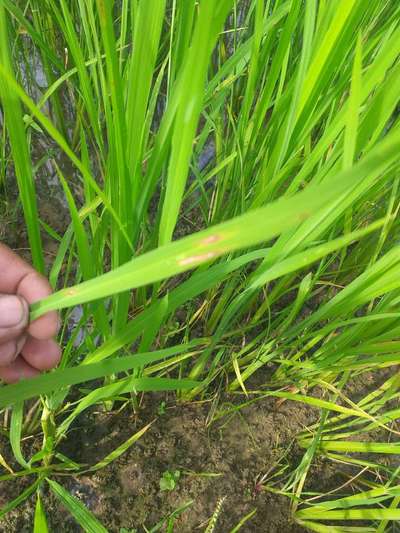 लाल सफेद रंग के धब्बे होते हैं एवं कल्ले भी कम हैं। क्रांति धान की बोनी किया है ।