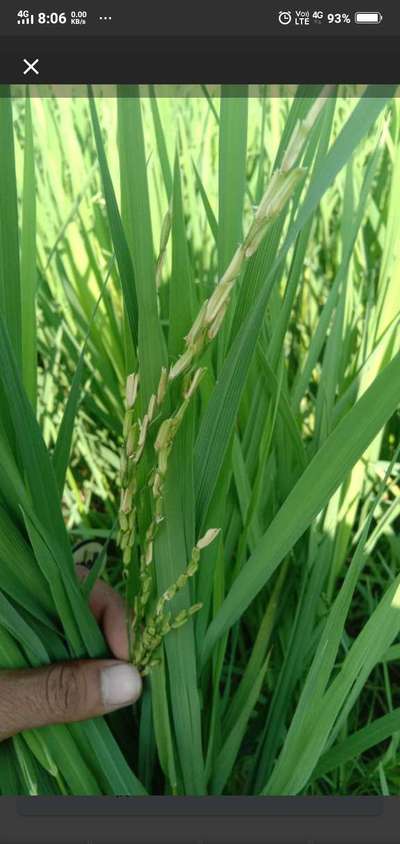 धान मे पहली बाल निकली है पुरे खेत मे कुछ बाल निकली है और बाल मे सफेद दाने है उपाय बताय कैसे रोकथाम करे