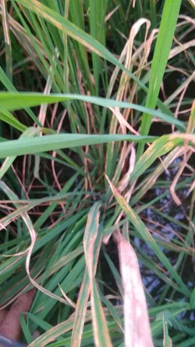 पत्तियां सही है, जड़ में कीड़े नहीं है बल्कि धान की बालियां जहां से निकलती है यानी सबसे ऊपरी गांठ में कीड़े हैं।
