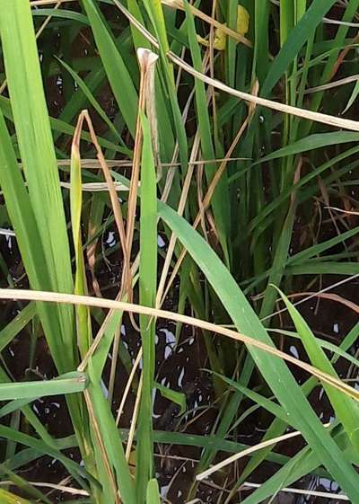 धान की फसल में लाल सफेद पत्ती दिखाई दे रही है