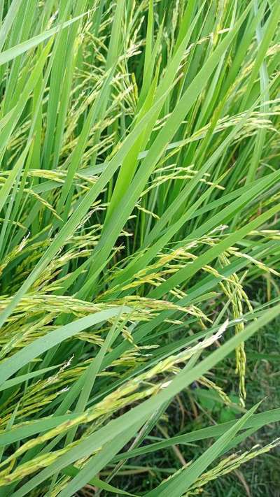 धान के पुराने पत्ते पीले रंग के हो रहे हैं