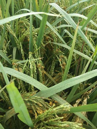कीड़े बहुत ज्यादा है और कहीं कहीं धान पूरा सुख चुका है