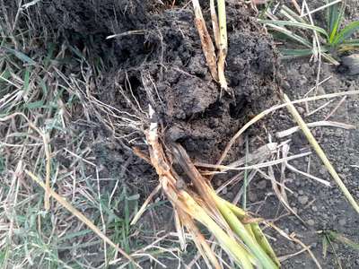 पत्तियों में कोई बदलाव नहीं है ओर जड़ें काली ओर सफेद इल्लियां है।