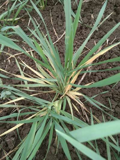 पत्तियां पीली पढ़ रही हैं पौधे पर कत्थई कलर के दाग आ चुके हैं फसल में पीलापन है