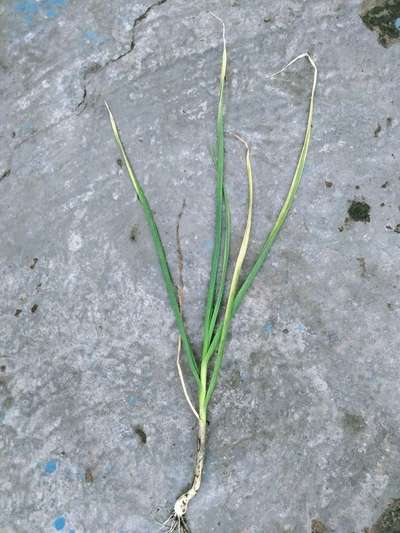 लहसुन में यह कोनसा रौग हो गया है इस का कारण क्या है । इस का उपाय बताए ।