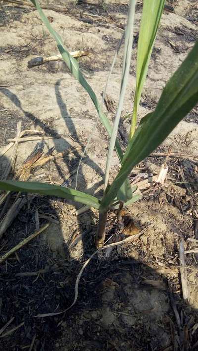 बीच का कल्ला पीला हो गया है जगा जगा पत्तिया सिकुड़ गई है और वही के टूट जा रही हैं और गन्ने का बड़वार रुक गया है