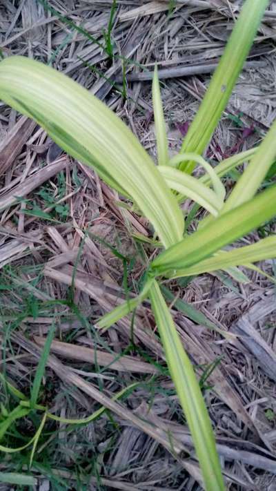 गन्ने की पत्तियां बीच से सफ़ेद होकर कलियों का रंग भी सफ़ेद आ रहा है