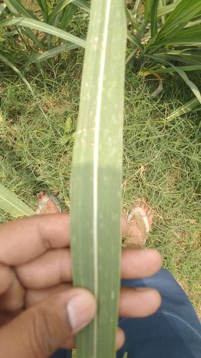 गन्ने की पत्तियों में हल्के हल्के लाल रंग के छींटे पढ़ रहे हैं