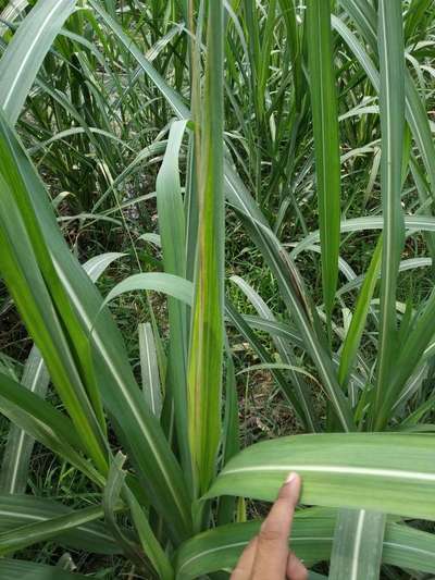 Meri ganna ki fhsal ka colour pila pd gya or beech ki gobh bilkul sukh gyi h. Or pattiyo k beech ka bhag red colour la ho gya h.