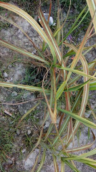 पौधे की जड़ से घास की तरह काफी घने तने निकल रहे हैं।तथा पत्तियां पीली सफेद व बहुत बारीक हो गई हैं।