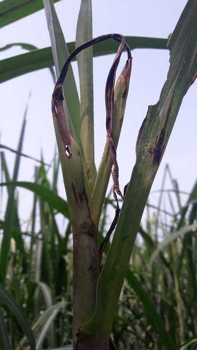 ऊपर से पत्ती का सूखा हुआ होना ।। गन्ने का ज्यादा विकसित ना होना।।।