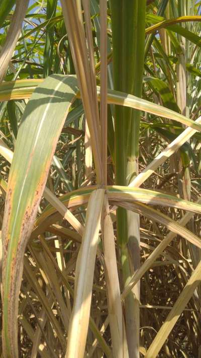 भाई ये लाल सड़न रोग है रोकने की विधि- सूखे हुए गन्ने के थले को उखड़ कर खेत से दूर कर दे या हो सके तो नष्ट कर दे उखड़े हुए गन्ने के थलो में बेलिचिंग पाउडर को डाल कर दाब दे Hexstop का600ग्राम /एकड़ की दर से छिड़काव करें