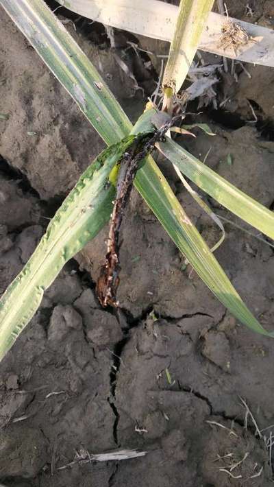 गन्ने की नीचे की पत्तियां लाल हो रही
