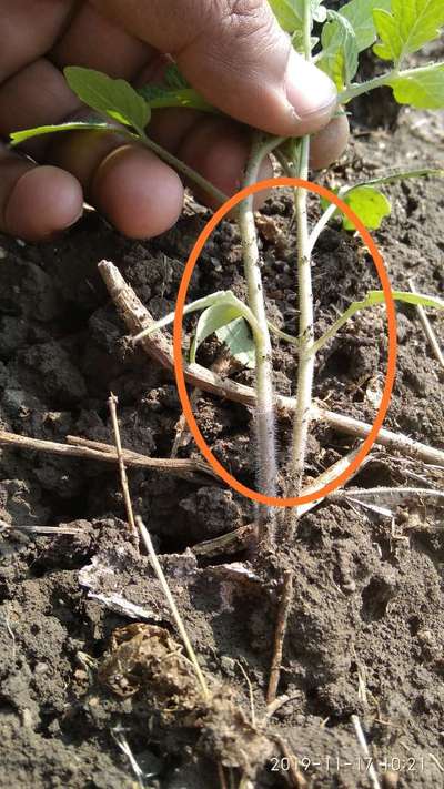 आज टमाटर के हर पौधे पे 8-10 की संख्या में ये कीट दिखे और तने तथा पत्तियों पर काटने के निशान। पौधे तने से टूट कर गिर रहे है। कृपया उपचार बतायें।