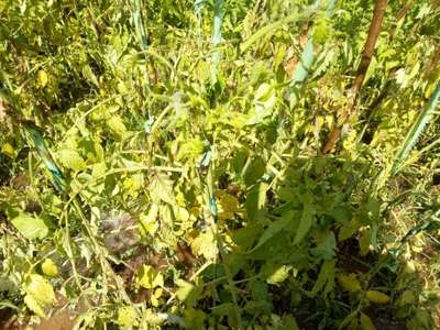 टमाटर की पत्तियाँ मुरझा के पीले हो रहें कृपया इसके उपचार के लिये कोई सुझाव दें? तीन दिने पहले किटाणु नाशक दवाई को मिलाकर छीड़काव कर दिये हैं मेरे पिताजी ने । profex super और glyno नाम की है