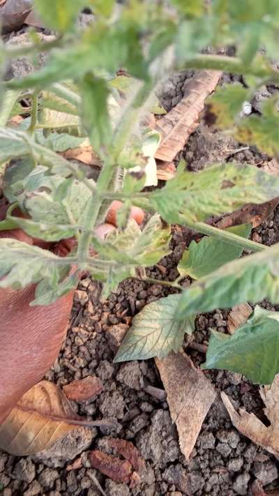 पत्तियोंका रंग भी अलग है और टमाटर भी सुखने लगा है