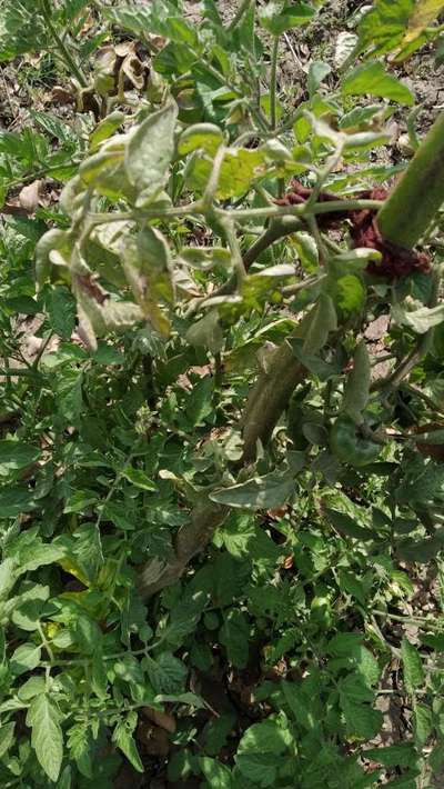 tamatar के पुराने पत्ते का निचे का भाग कहिं कहिं brown चम्किला हो रहा हे.