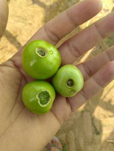 कीड़ा टमाटर को खा जा रहा है।