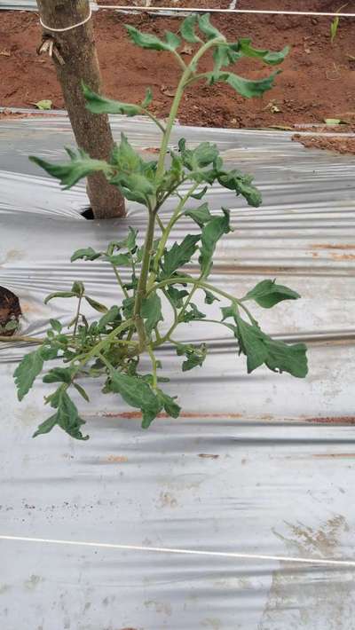 Kuchh tamatar ke plant me patte niche mud gaye hain. But kam hain Chhota chota fal lagna chalu ho gaya hai. Patti chauda ho aur thoda growth bhi kam lag raha hai