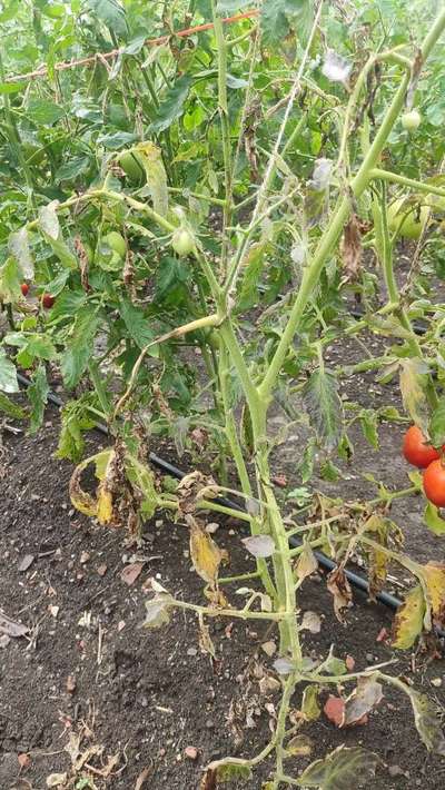 टमाटर का पौधा लंबा हो रहा है पत्ते मर रहे हैं