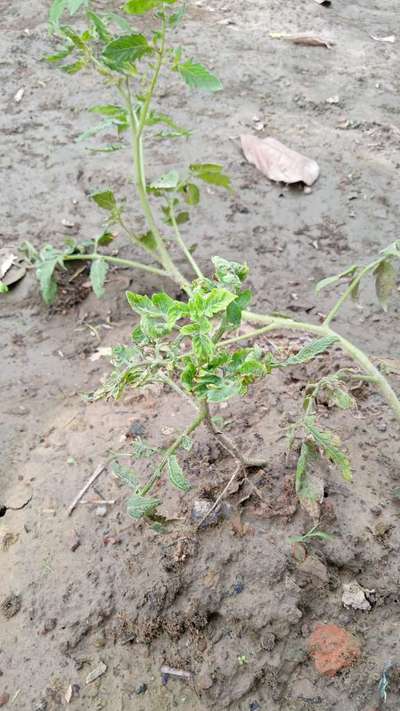 इस टमाटर की पत्तियां सिकुड़ रहीं है तथा विकाश रुका हुआ है