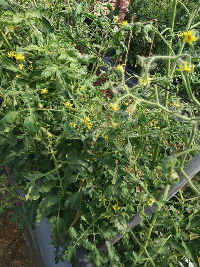टमाटर की पत्तियां सिकुड़ा हुआ है और पीलापन भी है फूल फ्रेस है इसका रोक थाम केलिए कोई उपचार बताओ
