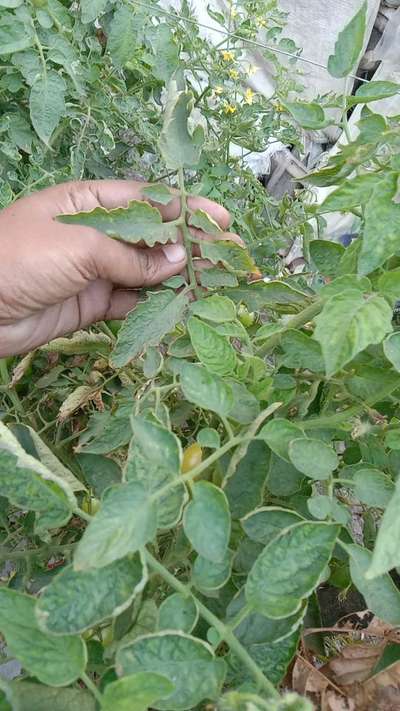 नमस्ते आप पौधे में टमाटर की पत्ती मोड़ने वाला पीला विषाणु (येल्लो लीफ़ कर्ल वायरस) रोग का लक्षण दिखाई दे रहा है कि आप ऊपर दिए गए रहे लिंक पर क्लिक करे और रोग के उपचार के जानकारी पाए