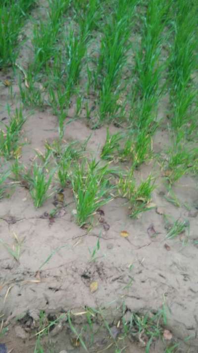 गेहूँ के पौधे की जड़ के पास कोई रोग लगा होने के कारण गेहूँ का पौधा सूख रहा है जिस कारण से पौधों में दाना नहीं हो पा रहा है