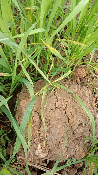 गेहूं की पत्तियों में रंग की परिवर्तन हो रही है जिसके कारण गेहूं की पत्तियां मर रही है
