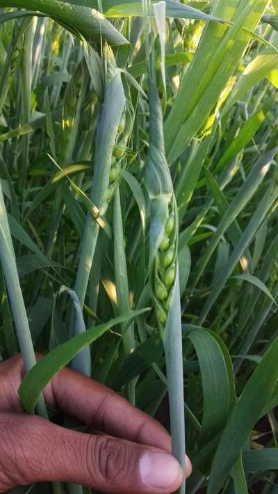पत्तियां गेहूं की उम्मी को पकड़ रही है और उम्मी को बढ़ने नहीं दे रही हैं।