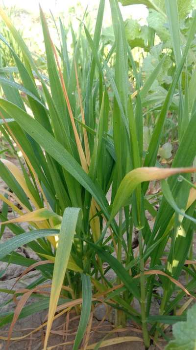 गेहूं पीली पड़ रही है उसकी पत्तियों में मोड़ा आ रहा है।