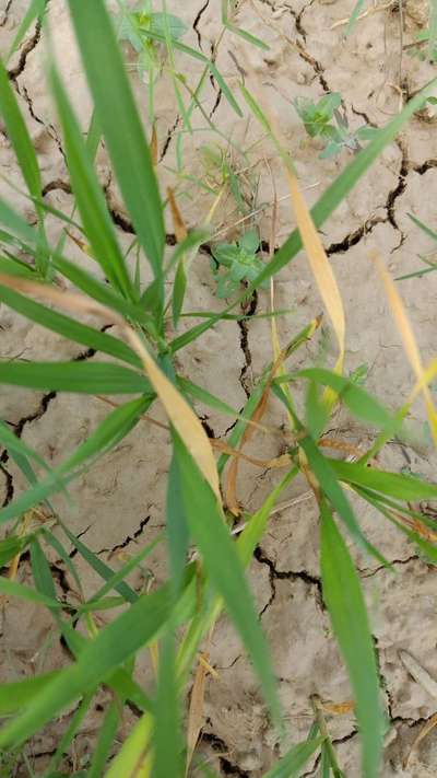 जड़ से गेहूं की पूरी पत्तियां पीलापन है और सुखी जा रही हैं