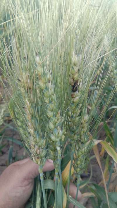 गव्हाच्या लोम्बी मध्ये काळसर रंगाचे मातीसारखे काहीतरी आहे,कृपया उपचार सांगा