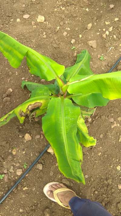 ಹೆಲೋ Lax Patil. ಇದು Banana Streak Virus ರೋಗ ತಗುಲಿದೆ ಅನಿಸುತ್ತಿದೆ. ಇದಲ್ಲದೆ, ತಾವು ಪ್ಲ್ಯಾನಟಿಕ್ಸ ನ ಹೊಂ ಪೇಜನಲ್ಲಿ ತಮ್ಮ ಅನುಕೂಲಕ್ಕೆ ಕೊಟ್ಟಿರುವ "ರಸಗೋಬ್ಬರ ಕ್ಯಾಲ್ಕುಲೇಟರ","ಬೆಳೆ ಸಲಹೆ" "ಸಸ್ಯಕ ಹಂತ" ದ "ಎಲ್ಲಾ ಕಾರ್ಯಗಳು ನೋಡಿ",ಮತ್ತು "ಹವಾಮಾನ ವರದಿ" ಎನ್ನುವ ವಿಭಾಗಗಳನ್ನು ಉಪಯೋಗಿಸಿಕೊಂಡು ಸಮಯಕ್ಕೆ ಸರಿಯಾದ ಕ್ರಮಗಳು ಅನುಸರಿಸಿರಿ. ಇವು ನಿಮಗೆ ಬೆಳೆಯ ಉತ್ಪಾದನೆಯನ್ನು ಹೇಗೆ ಉತ್ತಮಗೊಳಿಸಬಹುದು ಎಂಬುದರ ಕುರಿತು ಮಾಹಿತಿ ಒದಗಿಸುತ್ತವೆ.
