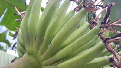 ಬಾಳೆಗೊನೆಯ ಮೇಲ್ಭಾಗದ ಬಾಳೆ ಸಿಪ್ಪೆಯ ಮೇಲ್ಬಾಗ ಮಚ್ಚೆ ಇಂದ ಕೂಡಿರುತ್ತದೆ