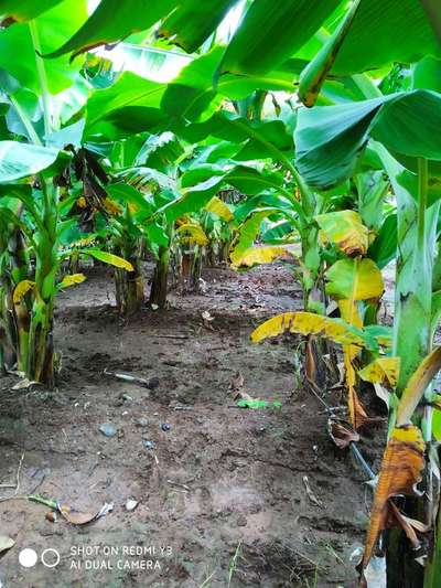 ಹೆಲೋ ಸಂದೀಪ್. ಈ ಚಿತ್ರದಲ್ಲಿ ತಮ್ಮ ಬಾಳೆ ಬೆಳೆ ಹಳದಿ ಕಾಣುತ್ತಿದ್ದು, ಇದು Nitrogen Deficiency ಕೊರತೆ ಮತ್ತು ಪ್ರಾರಂಭ ಹಂತದ Panama Disease ರೋಗದ ಭಾಧೆ ಇರಬಹುದು ಅನಿಸುತ್ತಿದೆ. ತಾವು ಇಲ್ಲಿ ತೋರಿಸಿದ ಹಸಿರು ಬಣ್ಣದ ಅಕ್ಷರಗಳ ಲಿಂಕಗಳ ಮೇಲೆ ಬೆರಳು ಒತ್ತಿ ಹತೋಟಿ ಕ್ರಮಗಳು ಅನುಸರಿಸಿರಿ. ಬೇರೆ ಏನಾದರು ತೊಂದರೆ ಇದ್ದರೆ, ಇನ್ನೊಮ್ಮೆ ಇನ್ನಷ್ಟು ಕ್ಲಿಯರ್ ಇರುವ ಹತ್ತಿರದ ಹಗಲು ಹೊತ್ತಿನ ಸಮಯದಲ್ಲಿ ತೆಗೆದ ತೋಟದಲ್ಲಿನ ನೇರವಾದ ಚಿತ್ರಗಳ ಜೊತೆ ಸಮಂಜಸ ಪ್ರಶ್ನೆಗಳು ಕಳುಹಿಸಿ ಮಾಹಿತಿ ಪಡೆಯಿರಿ.