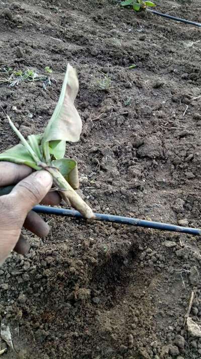 ಹೆಲೋ Sai. ಇದು Pseudostem Weevil ಕೀಟದ ಭಾಧೆ ಇರಬಹುದು ಅನಿಸುತ್ತಿದೆ. ಇಲ್ಲಿ ತೋರಿಸಿದ ಹಸಿರು ಬಣ್ಣದ ಅಕ್ಷರಗಳ ಲಿಂಕ್ ಮೇಲೆ ಬೆರಳು ಒತ್ತಿ ಹತೋಟಿ ಕ್ರಮಗಳು ಅನುಸರಿಸಿರಿ.