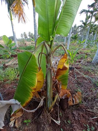 ಹೆಲೋ Halesha. ಈ ಚಿತ್ರದ ಪ್ರಕಾರವಾಗಿ ಮತ್ತು ತಮ್ಮ ಅನಿಸಿಕೆಯಂತೆ, ತಮ್ಮ ಬಾಳೆ ಬೆಳೆಗೆ ತೀವ್ರಗತಿಯಲ್ಲಿ Potassium Deficiency ಕೊರತೆ ಮತ್ತು Bacterial Soft Rot of Banana ರೋಗ ತಲುಲಿದೆ ಅನಿಸುತ್ತಿದೆ. ಇಲ್ಲಿ ತೋರಿಸಿದ ಹಸಿರು ಬಣ್ಣದ ಅಕ್ಷರಗಳ ಲಿಂಕಗಳ ಮೇಲೆ ಬೆರಳು ಒತ್ತಿ, ಪ್ಲ್ಯಾಟಿಕ್ಸ ಗ್ರಂಥಾಲಯವನ್ನು ಸಮ್ಪರ್ಕಿಸಿ, ಗುಣಲಕ್ಷಣಗಳನ್ನು ಸರಿಯಾಗಿ ತಿಳಿದುಕೊಂಡು, ಅಲ್ಲಿ ತೋರಿಸಿದ ಸರಿಯಾದ ಮುಂಜಾಗರೂಕತೆಯ ಕ್ರಮಗಳು ಮತ್ತು ಚಿಕಿತ್ಸಾ ಕ್ರಮಗಳು ತಕ್ಷಣ ಅನುಸರಿಸಿರಿ. ಜೊತೆಗೆ ತಮಗೆ ಗೋತ್ತಿರುವಂತೆ ಬಾಳೆ ಬೆಳೆಯ ಒಳ್ಳೆಯ ಬೆಳವಣಿಗೆ ಮತ್ತು ಇಳುವರಿ ಪಡೆಯಲು, ಸಾಕಷ್ಟು ಪ್ರಮಾಣದಲ್ಲಿ ಕೊಟ್ಟಿಗೆ ಗೊಬ್ಬರ ಅಥವಾ ಎರೆ ಹುಳು ಗೊಬ್ಬರದ ಜೊತೆಗೆ ತಮ್ಮ ಭಾಗದ ಬಾಳೆ ಬೆಳೆಗೆ ಶಿಫಾರಸಿನ ಪ್ರಮಾಣದಲ್ಲಿ ರಾಸಾಯನಿಕ ಗೊಬ್ಬರಗಳು ಕೊಡಬೇಕು ಅಥವಾ ಇಲ್ಲಿ ಪ್ಲ್ಯಾಟಿಕ್ಸ ನ ಹೊಂ ಪೇಜನಲ್ಲಿ ಕೊಟ್ಟಿರುವ ರಸಗೊಬ್ಬರಗಳ ಕ್ಯಾಲ್ಕುಲೇಟರ ಬಳಸಿಕೊಂಡು ರಾಸಾಯನಿಕ ಗೊಬ್ಬರಗಳು ಕೊಡಬಹುದು. ಇದರಿಂದ ಗಿಡಗಳ ಒಳ್ಳೆಯ ಬೆಳವಣಿಗೆ ಮತ್ತು ಇಳುವರಿ ನಿರೀಕ್ಷಿಸಬಹುದು.