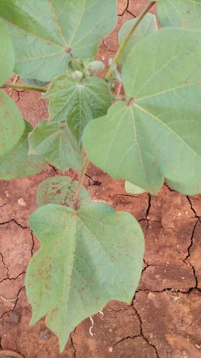 ಹೆಲೋ Gr Bhandari. ತಾವು ಕಳಿಸಿದ ಚಿತ್ರದ ಪ್ರಕಾರವಾಗಿ ತಮ್ಮ ಬೆಳೆಯ ಮೇಲೆ ಕೆಂಪು ಇರುವುದು ಮಣ್ಣು ತಗುಲಿದೆ ಅನಿಸುತ್ತೆ. ಈ ಚಿತ್ರದ ಪ್ರಕಾರವಾಗಿ ತಮ್ಮ ಹತ್ತಿ ಬೆಳೆ Healthy ಇದೆ.