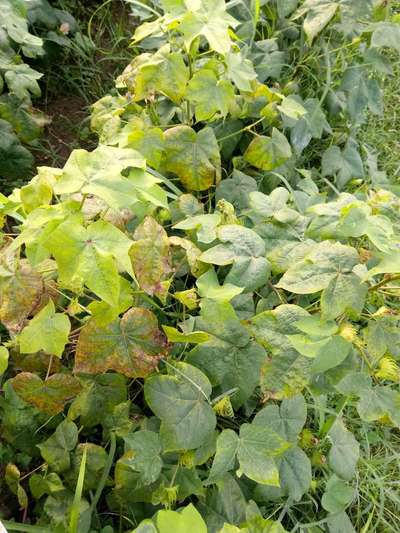 ಹೆಲೋ Mahadevappa Mokaashi. ತಮ್ಮ ಹತ್ತಿ ಬೆಳೆಯಲ್ಲಿ ಕಳೆ ಬೆಳೆದಿರುವಂತೆ ಕಾಣುತ್ತಿದೆ. ಆದಷ್ಟು ಬೇಗ ಆಳುಗಳನ್ನು ಬಳಸಿ ಅಥವಾ ಡೀಜಲ್ ಚಾಲಿತ ಅಥವಾ ಪೆಟ್ರೋಲ್ ಚಾಲಿತ ಕಳೆ ತೆಗೆಯುವ ಯಂತ್ರಗಳು ಬಳಸಿ ಕಳೆ ತೆಗೆಯಿರಿ. ಈ ಚಿತ್ರದ ಪ್ರಕಾರವಾಗಿ ತಮ್ಮ ಹತ್ತಿ ಬೆಳೆಗೆ Iron Deficiency ಮತ್ತು ತೀವ್ರಗತಿಯಲ್ಲಿ 0173/cotton-leafhopper-jassids/">Cotton Leafhopper Jassids ಕೀಟಗಳ ಭಾಧೆ ತಗುಲಿದೆ. ಇವುಗಳ ಹತೋಟಿ ಕ್ರಮಗಳಿಗಾಗಿ ಇಲ್ಲಿ ತೋರಿಸಿದ ಹಸಿರು ಬಣ್ಣದ ಅಕ್ಷರಗಳ ಲಿಂಕ ಮೇಲೆ ಬೆರಳು ಒತ್ತಿ ಪ್ಲ್ಯಾನಟಿಕ್ಸ ಗ್ರಂಥಾಲಯವನ್ನು ಸಮ್ಪರ್ಕಿಸಿ ಗುಣಲಕ್ಷಣಗಳನ್ನು ತಿಳಿದುಕೊಂಡು ಹತೋಟಿ ಕ್ರಮಗಳು ಅನುಸರಿಸಿರಿ.