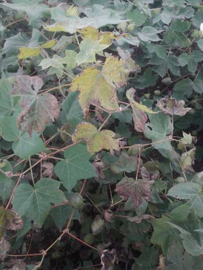 Hi Muttu . Showing multiple symptoms. Compare symptoms with Anthracnose of Cotton, Leaf Reddening of Cotton and Cotton Leafhopper Jassids by clicking on green links given here for taking control measures from Plantix library. Also use fertilizer calculater, crop Advisory, see all tasks and weather report to increase your crop productivity.