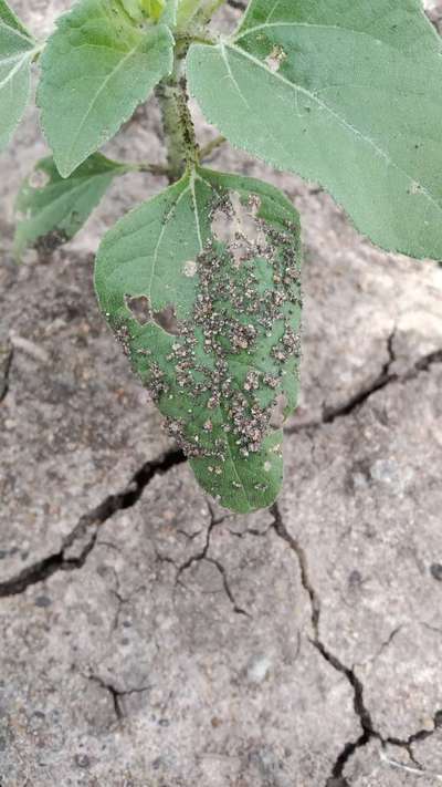 ಹೆಲೋ Prasannkumar. ಈ ಚಿತ್ರದ ಪ್ರಕಾರವಾಗಿ, ತಮ್ಮ ಸೂರ್ಯಕಾಂತಿ ಬೆಳೆಗೆ Aphids ಮತ್ತು Tobacco Caterpillar ಕೀಟದ ಭಾಧೆ ತಗುಲಿದೆ ಅನಿಸುತ್ತಿದೆ. ಆದರೆ ಖಾತ್ರಿ ಇಲ್ಲ. ಆದುದರಿಂದ ತಾವು ಇಲ್ಲಿ ತೋರಿಸಿದ ಹಸಿರು ಬಣ್ಣದ ಅಕ್ಷರಗಳ ಲಿಂಕಗಳ ಮೇಲೆ ಬೆರಳು ಒತ್ತಿ ಪ್ಲ್ಯಾಟಿಕ್ಸ ಗ್ರಂಥಾಲಯವನ್ನು ಸಮ್ಪರ್ಕಿಸಿ ಗುಣಲಕ್ಷಣಗಳನ್ನು ಸರಿಯಾಗಿ ತಿಳಿದುಕೊಂಡು ಹತೋಟಿ ಕ್ರಮಗಳು ಅನುಸರಿಸಿರಿ. ಬೇರೆ ಏನಾದರು ತೊಂದರೆ ಇದ್ದರೆ ಇನ್ನೊಮ್ಮೆ, ಇನ್ನಷ್ಟು ಕ್ಲಿಯರ್ ಇರುವ ಹತ್ತಿರದ ಚಿತ್ರಗಳ ಜೊತೆ ಸಮಂಜಸ ಪ್ರಶ್ನೆಗಳು ಕಳುಹಿಸಿ ಮಾಹಿತಿ ಪಡೆಯಿರಿ.