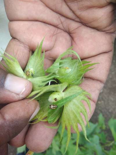 ಹೆಲೋ Sharanu. ತಮ್ಮ ಹತ್ತಿ ಬೆಳೆಗೆ Pink Bollworm ಕೀಟಗಳ ಭಾಧೆ ತಗುಲಿದೆ ಅನಿಸುತ್ತಿದೆ. ಇಲ್ಲಿ ತೋರಿಸಿದ ಹಸಿರು ಬಣ್ಣದ ಅಕ್ಷರಗಳ ಲಿಂಕ್ ಮೇಲೆ ಬೆರಳು ಒತ್ತಿ ಹತೋಟಿ ಕ್ರಮಗಳು ಅನುಸರಿಸಿರಿ. ಇಲ್ಲಿ ತೋರಿಸಿದ ಹುಳು "ಲೆಡಿ ಬರ್ಡ್ ಬ್ಯೀಟಲ್" ಎನ್ನುವ ರೈತ ಸಹಕಾರಿ ಕೀಟ ಇದೆ ಅನಿಸುತ್ತಿದೆ. ಈ ಕೀಟ ಹತ್ತಿ ಬೆಳೆಯ ಮೇಲೆ ಬರುವು ವಿವಿಧ ಸಣ್ಣ ರಸ ಹೀರುವ ಕೀಟಗಳಾದ Whiteflies, Aphids, Thrips ಮತ್ತು ಇತರ ಕೀಟಗಳು ತಿನ್ನುವಲ್ಲಿ ಸಹಾಯ ಮಾಡುವುದಲ್ಲದೆ, ರಸ ಹೀರುವ ಕೀಟದ ಭಾಧೆ ಕಡಿಮೆ ಮಾಡುವಲ್ಲಿ ಸಹಕರಿಸುತ್ತವೆ. ಇದನ್ನು ತಾವು ಸರಿಯಾಗಿ ಗಮನಿಸಿ ನೋಡಿರಿ. ಬೇರೆ ಏನಾದರು ತೊಂದರೆ ಇದ್ದರೆ ಇನ್ನೊಮ್ಮೆ, ಇನ್ನಷ್ಟು ಕ್ಲಿಯರ್ ಇರುವ ಹತ್ತಿರದ ಹಗಲು ಹೊತ್ತಿನ ಸಮಯದಲ್ಲಿ ತೆಗೆದ ತೋಟದಲ್ಲಿನ ನೇರವಾದ ಚಿತ್ರಗಳ ಜೊತೆ ಸಮಂಜಸ ಪ್ರಶ್ನೆಗಳು ಕಳುಹಿಸಿ ಮಾಹಿತಿ ಪಡೆಯಿರಿ.