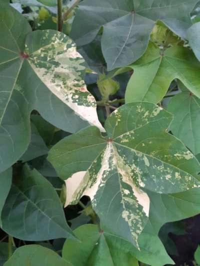ಹೆಲೋ Sridhar Reddy. ಈ ಚಿತ್ರದ ಪ್ರಕಾರವಾಗಿ ಮತ್ತು ತಮ್ಮ ಅನಿಸಿಕೆಯಂತೆ, ತಮ್ಮ ಹತ್ತಿ ಬೆಳೆಗೆ Leaf Variegation, Whiteflies ಮತ್ತು Thrips ಕೀಟದ ಭಾಧೆ ತಗುಲಿದೆ ಅನಿಸುತ್ತಿದೆ. ಇಲ್ಲಿ ತೋರಿಸಿದ ಹಸಿರು ಬಣ್ಣದ ಅಕ್ಷರಗಳ ಲಿಂಕಗಳ ಮೇಲೆ ಬೆರಳು ಒತ್ತಿ ಪ್ಲ್ಯಾಟಿಕ್ಸ ಗ್ರಂಥಾಲಯವನ್ನು ಸಮ್ಪರ್ಕಿಸಿ ಗುಣಲಕ್ಷಣಗಳನ್ನು ಸರಿಯಾಗಿ ತಿಳಿದುಕೊಂಡು ಹತೋಟಿ ಕ್ರಮಗಳು ಅನುಸರಿಸಿರಿ.
