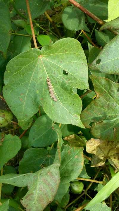 ಹೆಲೋ Nagaraj Angadi. ಈ ಚಿತ್ರದ ಪ್ರಕಾರವಾಗಿ, ತಮ್ಮ ಹತ್ತಿ ಬೆಳೆಗೆ Tobacco Caterpillar ಮತ್ತು ಪ್ರಾರಂಭ ಹಂತದ Bacterial Blight of Cotton ಮತ್ತು Potassium Deficiency ಕೊರತೆ ಕಂಡು ಬಂದಿದೆ ಅನಿಸುತ್ತಿದೆ. ಆದರೆ ಖಾತ್ರಿ ಇಲ್ಲ. ಆದುದರಿಂದ ತಾವು ಇಲ್ಲಿ ತೋರಿಸಿದ ಹಸಿರು ಬಣ್ಣದ ಅಕ್ಷರಗಳ ಲಿಂಕಗಳ ಮೇಲೆ ಬೆರಳು ಒತ್ತಿ ಪ್ಲ್ಯಾಟಿಕ್ಸ ಗ್ರಂಥಾಲಯವನ್ನು ಸಮ್ಪರ್ಕಿಸಿ ಗುಣಲಕ್ಷಣಗಳನ್ನು ಸರಿಯಾಗಿ ತಿಳಿದುಕೊಂಡು ಮುಂಜಾಗರೂಕತೆಯ ಕ್ರಮಗಳು ಮತ್ತು ಚಿಕಿತ್ಸಾ ಹತೋಟಿ ಕ್ರಮಗಳು ಅನುಸರಿಸಿರಿ.