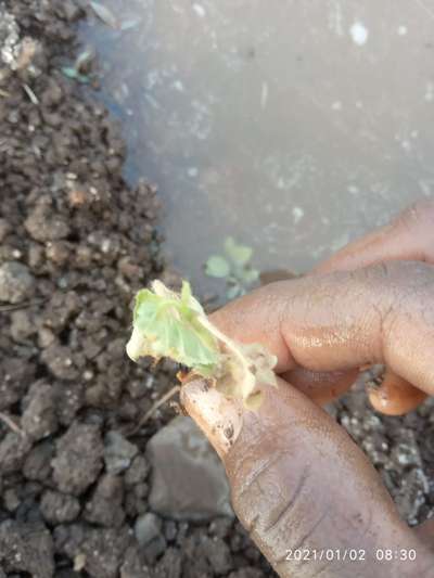 Dear Anaveer how are you welcome to plantix community dear the symptom is seem to be Damping-Off of Seedlings dear also seem to be Cotton Leafhopper Jassids attack
